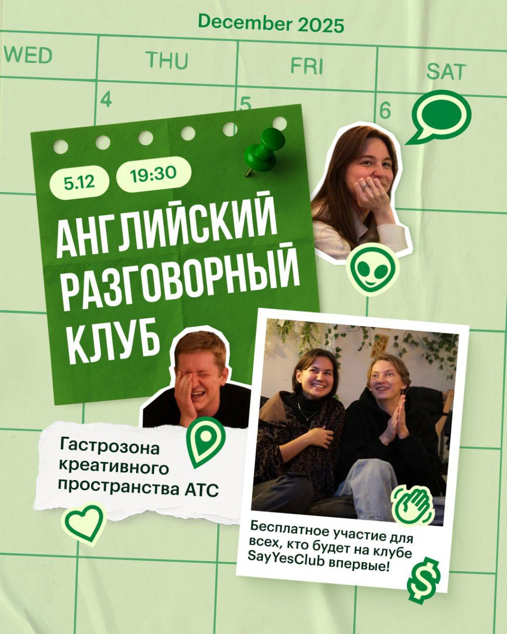 Ребята из SayYesClub стали нашими резидентами и будут проводить клубы по пятницам в нашем гастро-пространстве. Отличная возможность практиковать английский, познакомиться с интересными людьми и весело провести вечер!
